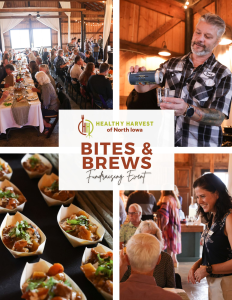 Healthy Harvest of North Iowa’s Bites & Brews fundraiser brought together more than 100 friends, neighbors, and supporters for an evening filled with connection, flavor, and community spirit. Held at The Rustic Barn Venue, the event showcased the very best of what our region has to offer—from farm-fresh ingredients to the stories of the people who grow and prepare them.