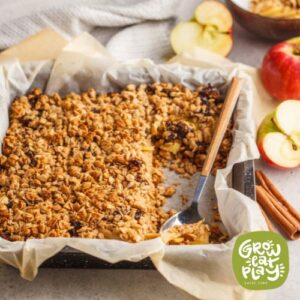 - Crumble the oat mixture on top of the apples. Gently press. Bake for 40 to 50 minutes. Serve with ice cream!