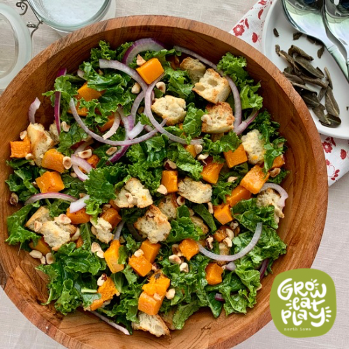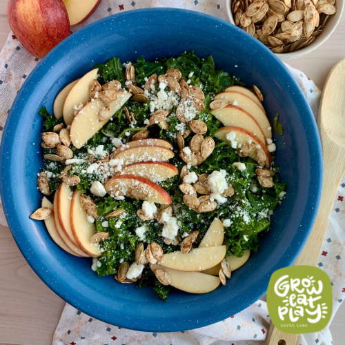Fall greens with a creamy apple cider vinegar dressing! Ingredients with an asterisk (*) are available seasonally right here in North Iowa! Click on select ingredients to find them nearby […]
