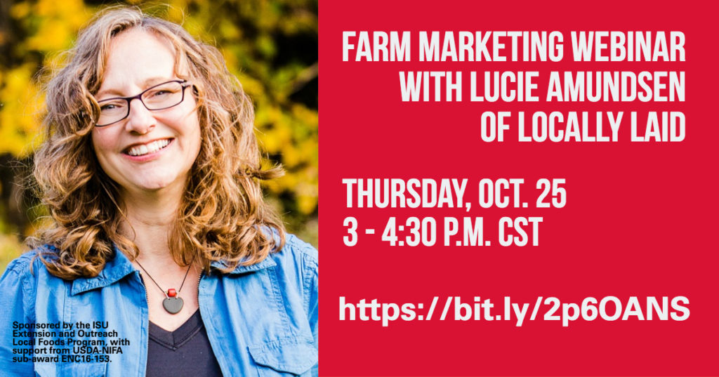 Join us for a free farm marketing webinar on Thursday, October 25, from 3 to 4:30 p.m. central time. Our presenter will be Lucie Amundsen, a writer, marketer, and co-owner of Locally Laid Egg Company of Minnesota. We’ll discuss how to fortify a brand, Lucie’s not-so-secret formula for creating “likable” content, and how to get your farm or other business a little ink in the press.