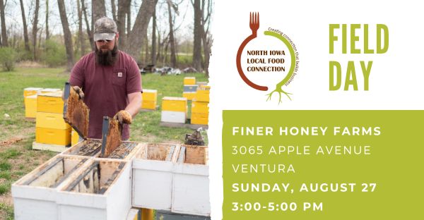 The North Iowa Local Food Connections program is coordinated by Healthy Harvest of North Iowa to build relationships between local food and farm businesses. This series of field days provides an opportunity to learn about the unique businesses across our region raising and providing great food. The network creates a space for businesses and friends to collaborate, learn, and create connections that build businesses and productive communities. North Iowa Food Connections program is a partnership of Healthy Harvest of North Iowa (www.healthyharvistni.com), local food and farm business. Support provided by a USDA Beginning Farmer and Rancher Development Program (BFRDP), in partnership with Practical Farmers of Iowa.