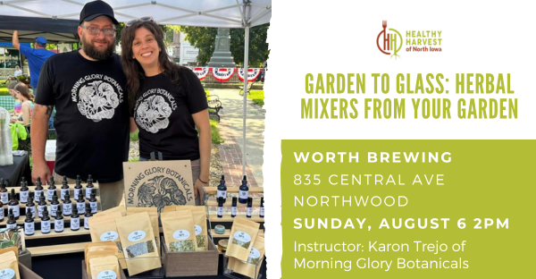 Karon Trejo, herbalist and owner of Morning Glory Botanicals, will lead the class through the steps of making drink mixers with herbal ingredients from their garden, as well as a special mixer made from a Worth Brewing Company beer! Alcohol will available to purchase at the bar for participants who want to sample a cocktail made from Trejo’s creations.