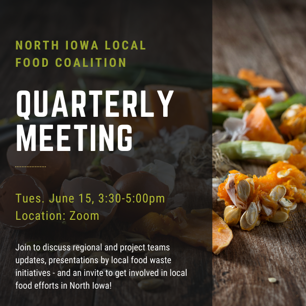 Join to discuss local food waste efforts, as well as enjoy time to touch base around current projects and ideas for local food in North Iowa!