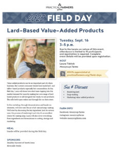 RSVP: https://practicalfarmers.org/events/field-days/2025-field-days/lard-based-value-added-products/