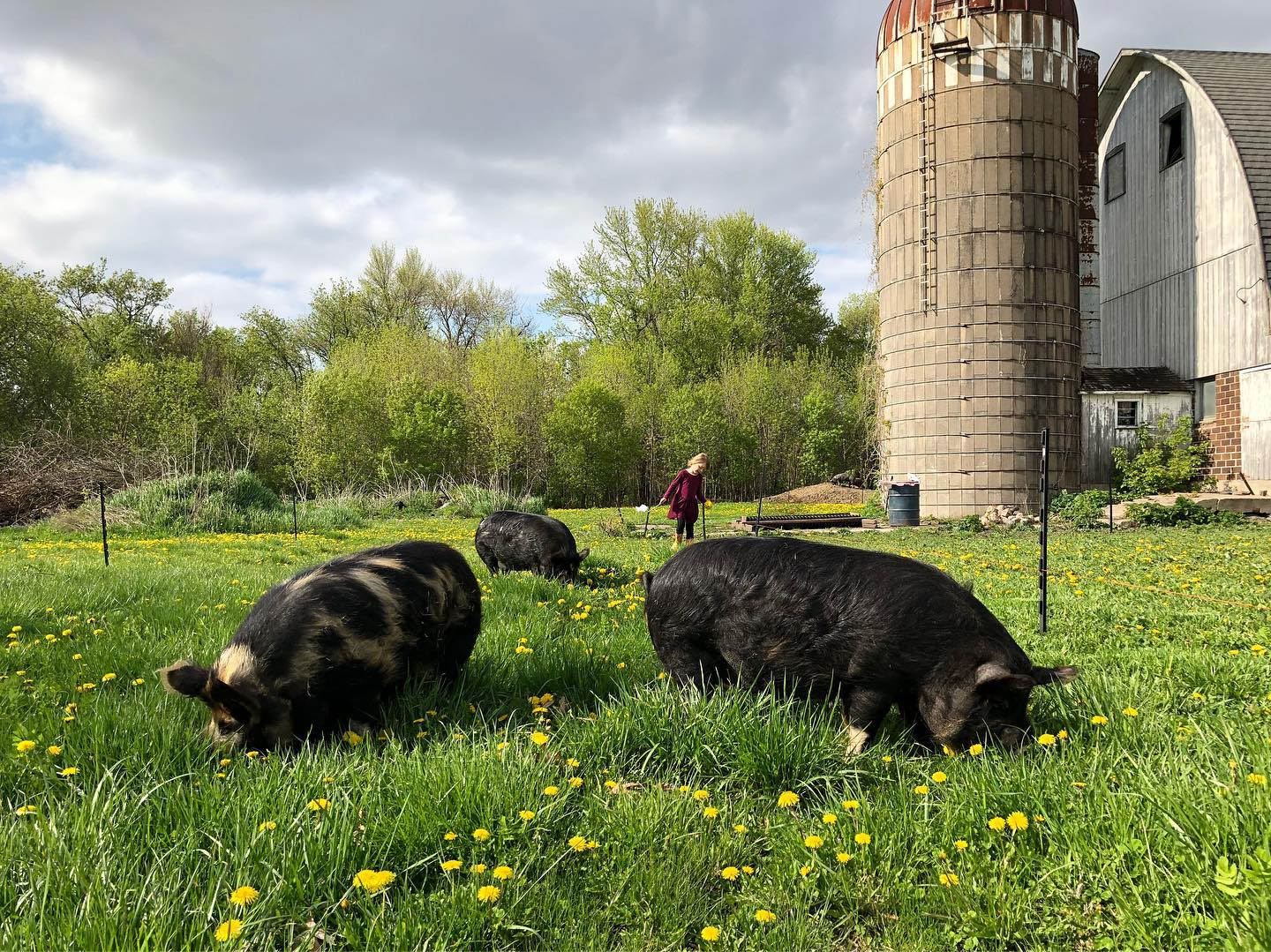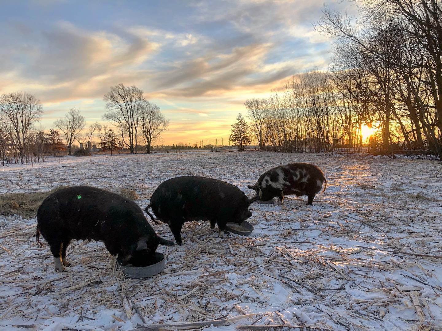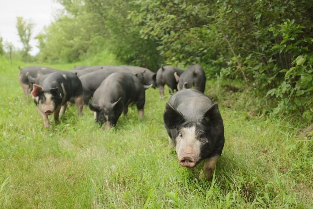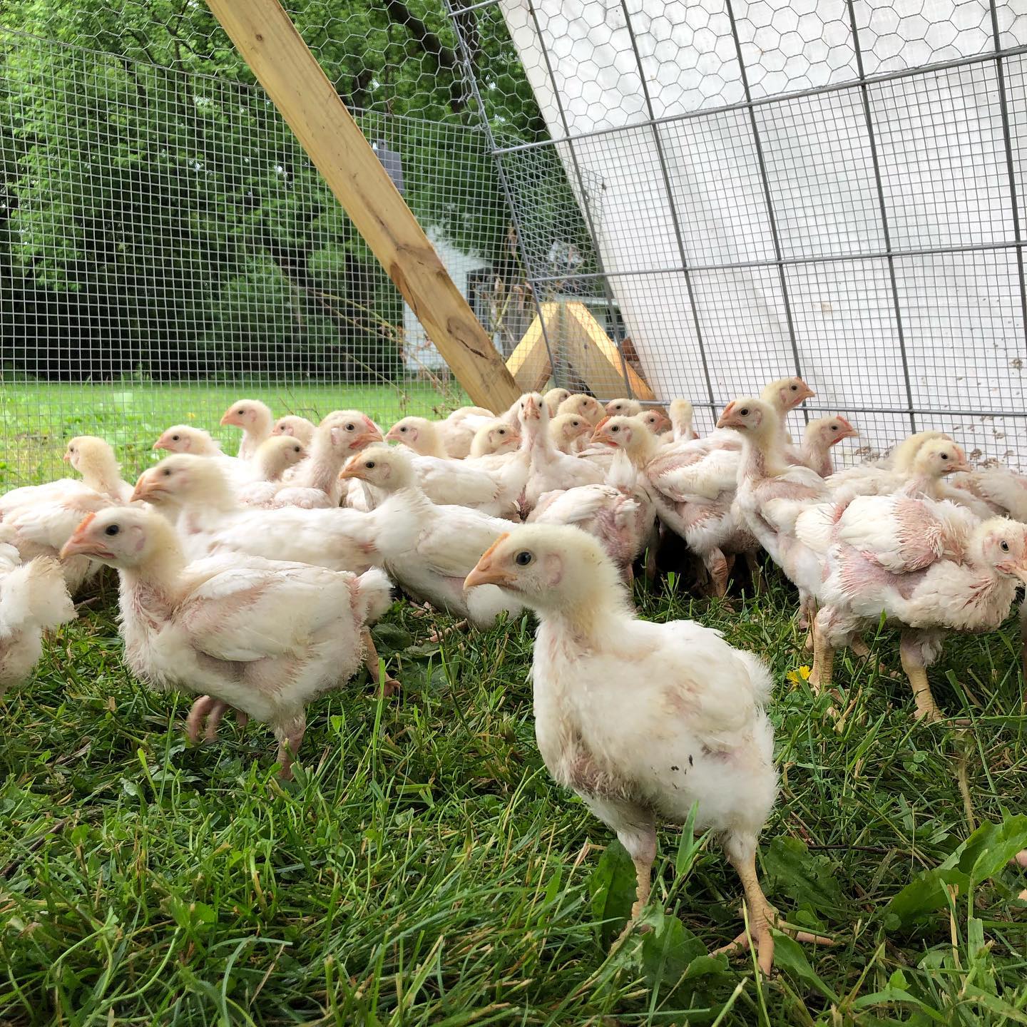 We purchased our acreage in April of 2016 with no intention of farming, just a garden and some backyard laying chickens. In an attempt to clear some land using animals, we got our first 10 pigs (the beginning of the farm) in April of 2017. I pre-sold all the pigs except for two which we ate and realized I wanted to raise more pigs the next year. In April of 2018 we started raising meat chickens because a market opportunity (an account with Simply Nourished) had opened up.