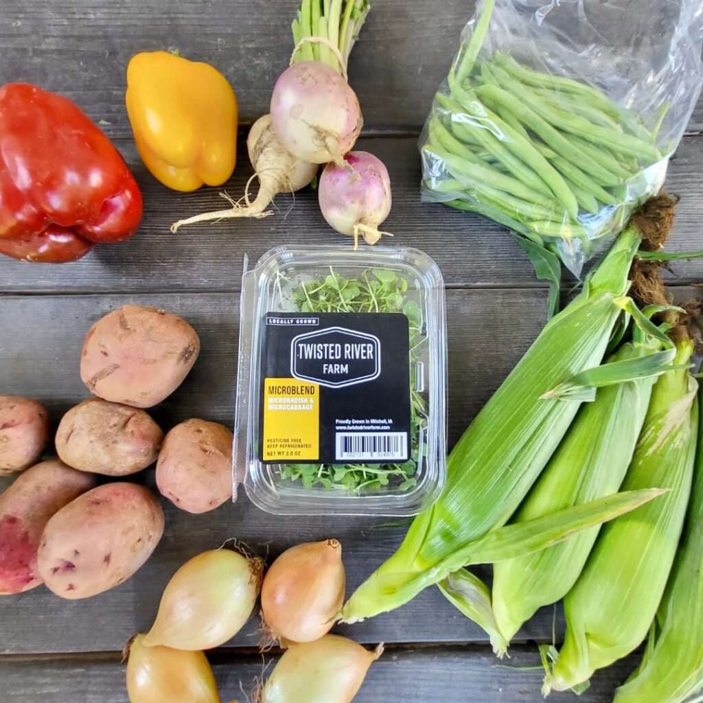 Twisted River Farm is a three acre farm in Mitchell, Iowa that grows vegetables, herbs, microgreens, and flowers using organic practices. Find Twisted River Farm products through their CSA program, on-site farm store, local grocery stores, farmers markets, and local restaurants.