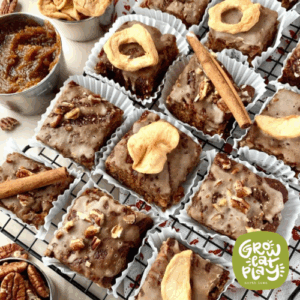 If Fall had a flavor it would be this cake! Bursting with pumpkin, apples, and spices (thanks to the pumpkin butter) we think you should add this cake to your Fall baking list. Ingredients with an asterisk (*) are available seasonally right here in North Iowa! Click on select ingredients to find them nearby or stop by your local farmer’s market.