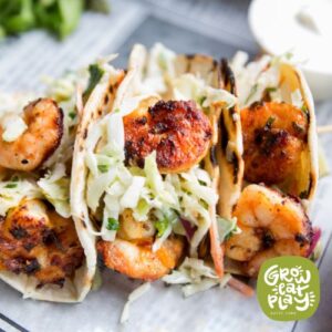 Shrimp Tacos with Creamy Cilantro Lime Slaw