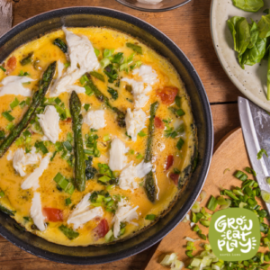A quick, easy, and delicious early season staple, frittatas are endlessly adaptable. Make it your own by adding whatever you have in the fridge! Ingredients with an asterisk (*) are available seasonally right here in North Iowa! Click on select ingredients to find them nearby or stop by your local farmer's market.