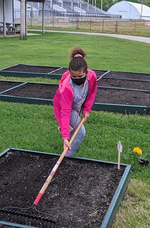 Right: Layla Scarlett a member of the Grove Progressive 4-H Club tills her garden plot to make ready for her vegetable garden planting she and her brother Linca did on May 21st.