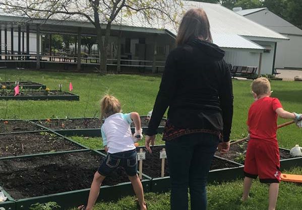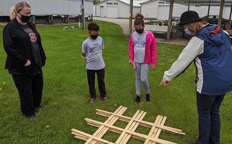 Worth County 4-Her’s are receiving garden planting instructions from ISU Extension Master Gardener and 4-H Garden Project Leader Janelle Johnson on the right. Pictured from left are 4-H parent Amy Brown, Linca Scarlett, Layla Scarlett, and Johnson.