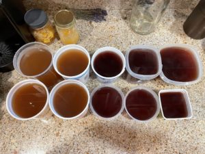 • 1 gallon vegetable scraps* carrot tops, potato skins, onion ends, garlic ends and skins, celery ends, squash peels, beet ends, kale stems, corn cobs, etc.