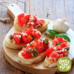 Bruschetta is the perfect appetizer for any meal or event. Ingredients with an asterisk (*) are available seasonally right here in North Iowa! Stop by your local farmer's market!